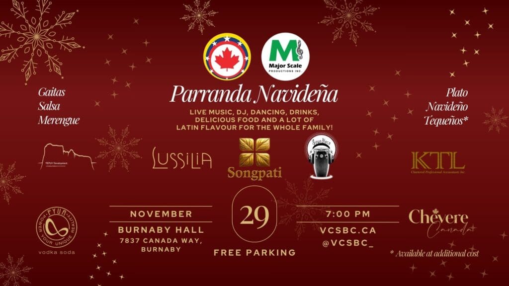 Una vez más, Major Scale Productions y la Sociedad Venezolana Canadiense de BC (VCSBC) te traen una “Parranda Navideña” – la fiesta que estabas esperando para este 2025.